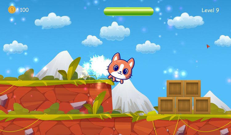 Pulling the tail, run the cat so that he overcomes all obstacles and collects the maximum amount of delicious food. When sending the cat into flight, beware of collisions with all sorts of obstacles in the form of wasps, dogs, stakes, and so on.