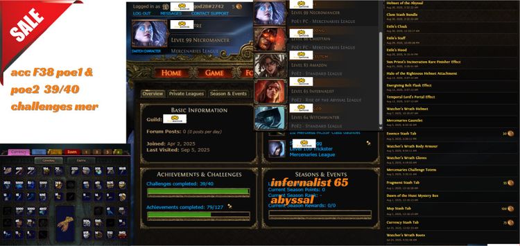 Path of Exile Accounts > PC > F38 POE1 POE2 39 40 CHALLENGES