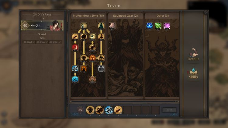 He is good at counterattack skills and strengthening physique. He has unique skills composed of Profound Sword, Profound Mind and Demon Sword.