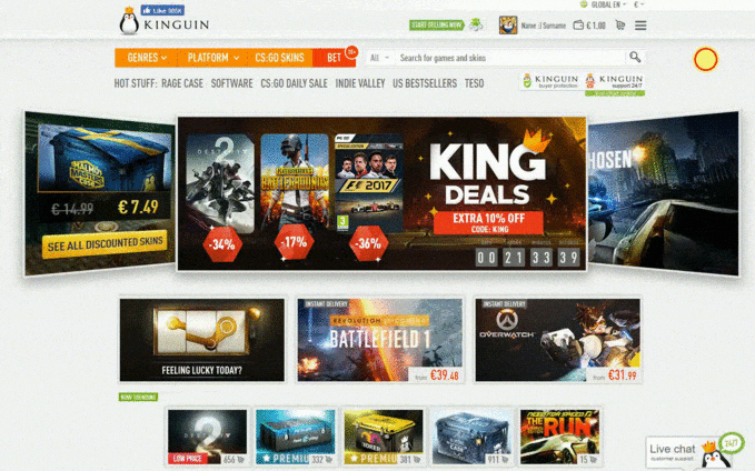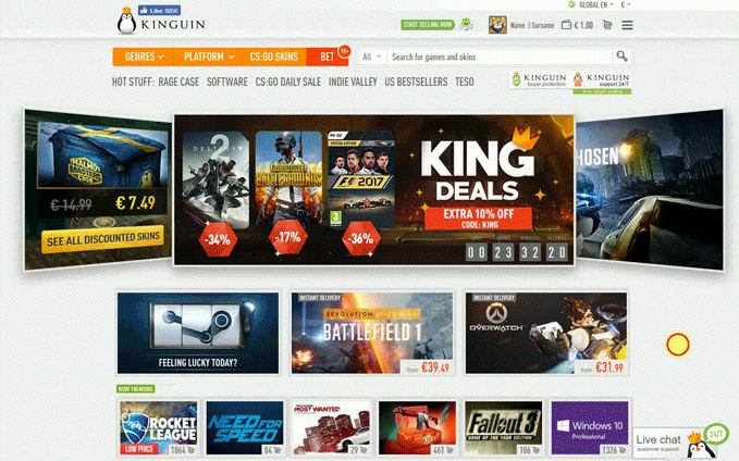 Kinguin.net is a platform that provides sellers and buyers from all around the world with the possibility to trade digital game keys and in-game items at a fair price with no hassle through an innovative platform. You can find more information about Kinguin.net at our dedicated About Us page.