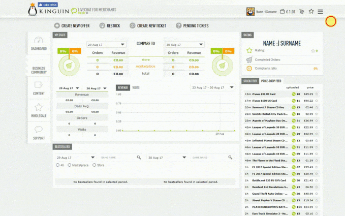 Sales Booster is a tool that can be used to promote your offers and as a result, boost your sales on Kinguin. By using Sales Booster, you will have a chance to place your offers at the top of the offers list giving them a special Kinguin Recommendation. The result is a better exposure for you and your offers by making them stand out from the crowd. Not only that, the top offers from these sections will be further promoted as the main offers on the product pages.