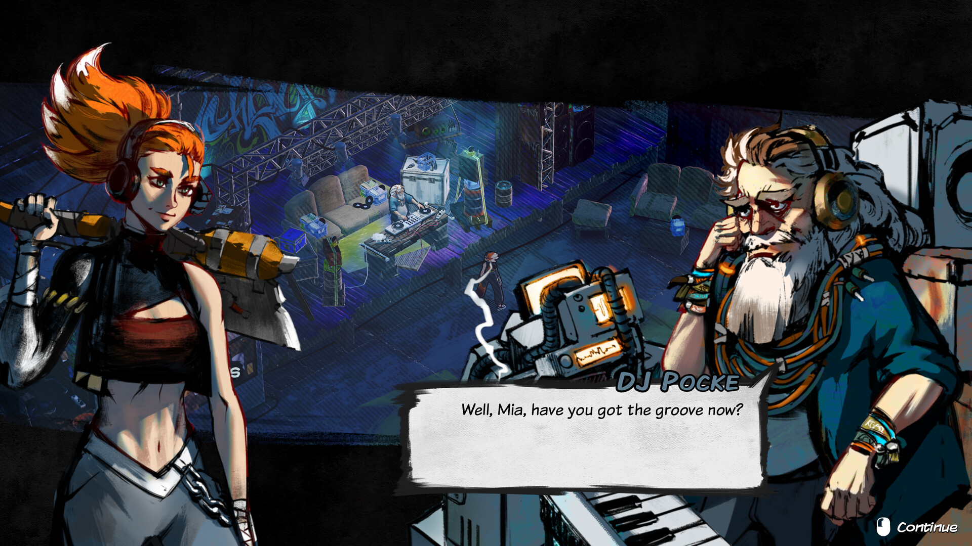 Unisciti a Mia, una tosta amante della musica e astuta armeggiatrice, mentre combatte orde di robot in una Berlino distopica ispirata agli anni '90.