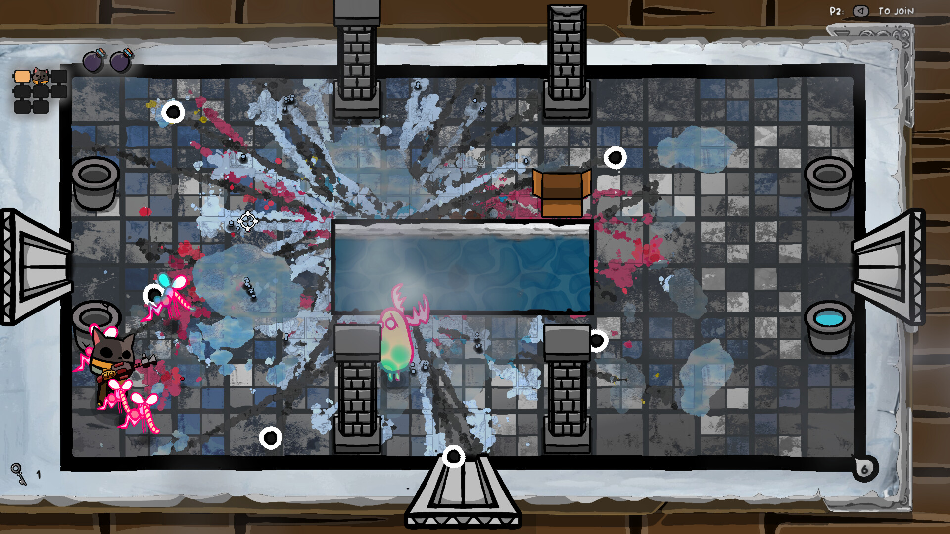 Tuffati in Ink. , un'avventura RPG roguelike esplosiva e colorata in cui ogni partita è un nuovo viaggio che aspetta di essere scoperto. Gioca da solo o fai squadra con gli amici in modalità cooperativa locale fino a tre giocatori e affronta le sfide che ti attendono.