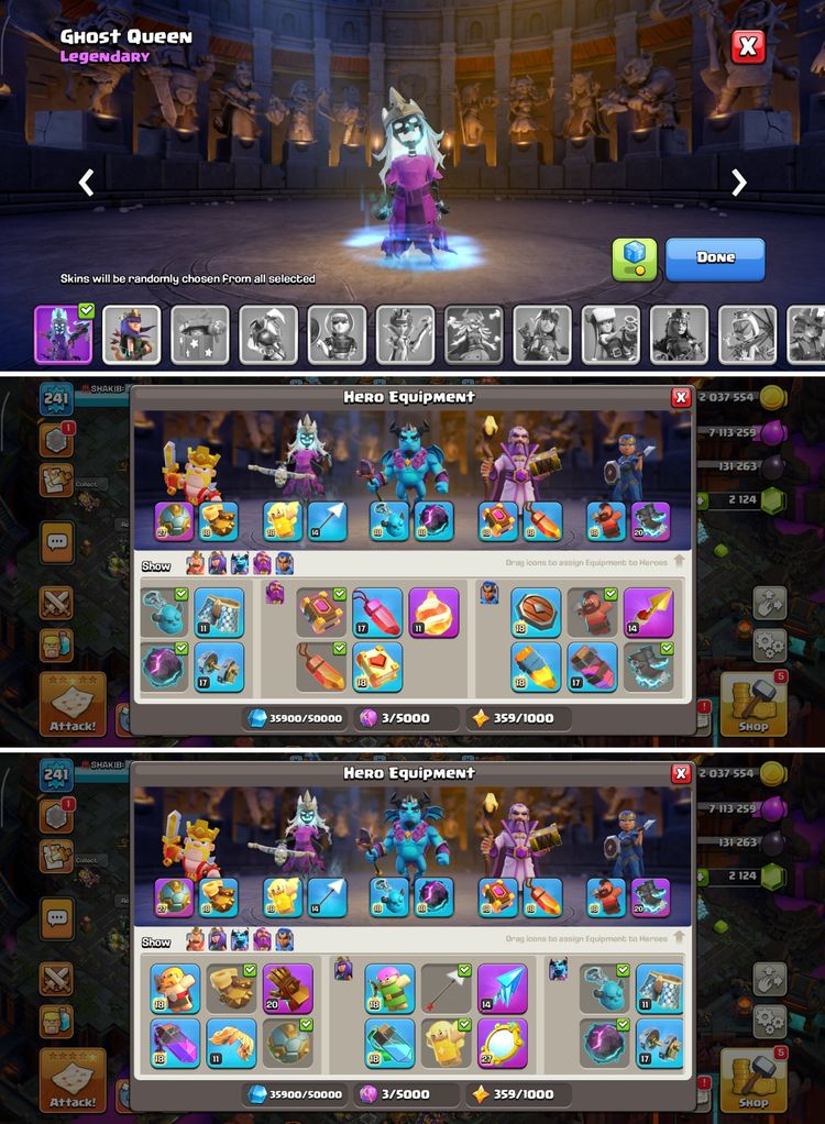 Clash Of Clans (Global) Accounts > Global > Hall LvL 16 > King LvL 95 > Queen LvL 95 > Warden LvL 70+ > Champion LvL 45+ > TH 18 FULL MAX HEROS-100 100 75 50 2 RARE SCENARY GHOST QUEEN 883 CWL MADELS CONNECT TO BUYER MAIL